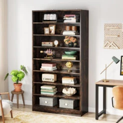 Tribesigns Bookshelf 9 Tier Bookcases, Display Shelf Storage Cabinet Organizer, Rustic Brown