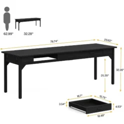Tribesigns 78.74″ Extra Long Executive Desk, Large Computer Office Desk With Wooden Double Pedestal