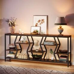Tribesigns 70.9-Inch Extra Long Sofa Table, 2-Tier Farmhouse Console Table With Storage Shelves