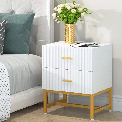 With two spacious drawers, this bedside table provides abundant storage to keep your bedroom essentials organized and conveniently accessible. You’ll have plenty of room to store your books, phone, and glasses, making this versatile nightstand a perfect addition to your home. Made from high-quality wood and metal materials, this bedside storage end table is built to last for years. Its sturdy and durable construction ensures that the bedroom storage unit can withstand daily wear and tear, making it a reliable choice for your bedroom.