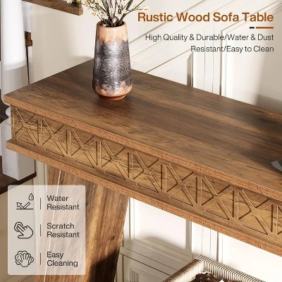 This long narrow console table features open shelves providing ample storage and display space. Great for collections , books, photos, and decor, it balances style and function perfectly.The rustic entryway table fits anywhere, from your living room to the hallway. Use it as a console, sofa table, or TV stand. Its design blends seamlessly with any decor.