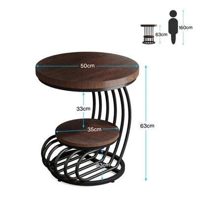 This practical side table offers a two-tier design that provides double-layer storage capacity, allowing you to easily organize and classify your photos, plants, magazines, or any other items. This compact and lightweight small round end table is practical and space-saving. It can be placed in any room of your home, serving as a stylish side end table in the living room, hallway, or entryway, or as a nightstand bedside table in the bedroom.