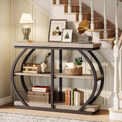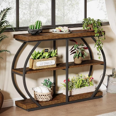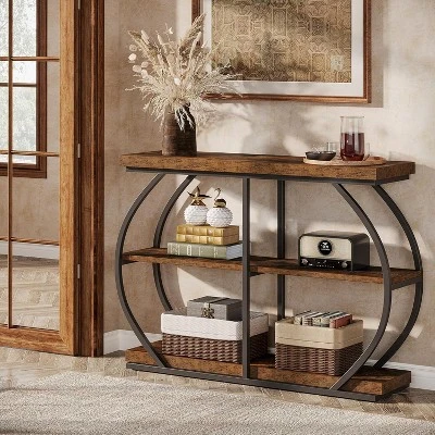 With 3 long tiers, this 41.3″ console table offers ample storage and display space. Use it to showcase collectibles or organize daily essentials like books, framed photos, vases, and decorative accents. This entry table effortlessly transforms to fit any room, whether as a sleek console table, a cozy sofa table, a welcoming entryway piece, or a stylish TV stand. Its adaptable size ensures it’s always the perfect fit.
