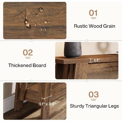 This console table exudes a blend of modern and vintage appeal, making it a perfect companion for your entryway or sofa. It puts on a pleasing show while enhancing the functionality of your space. Measuring 41.3″ W x 11.8″ D x 31.3″ H, this elegant accent table comfortably fits in the hallway, behind your couch, or in any narrow space. Despite its compact design, it promises considerable storage space.