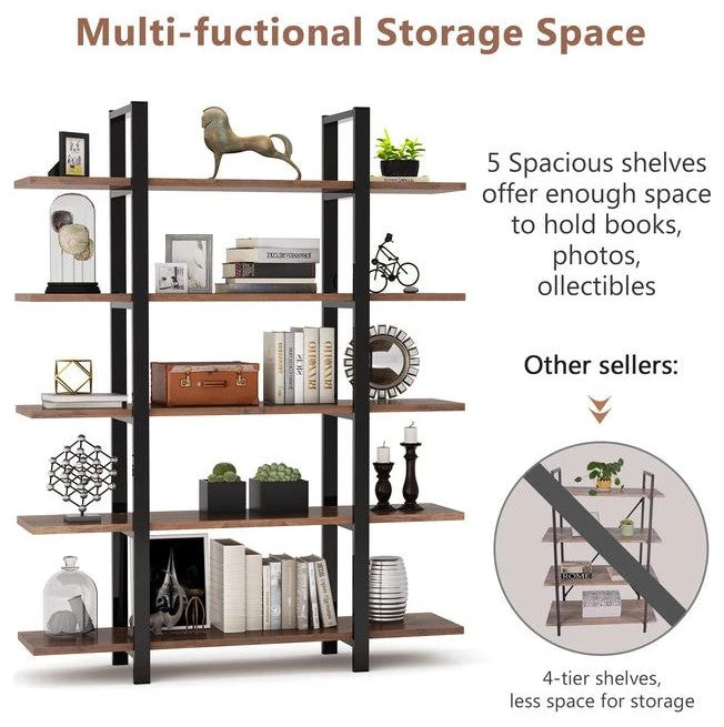 Tribesigns 5-Tier Wood Farmhouse Bookcase, Brown