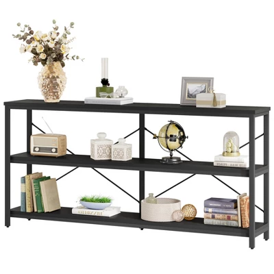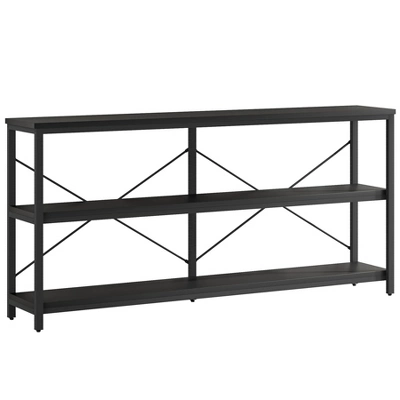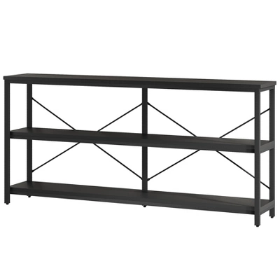 This sofa console table is made of high-grade 3cm thickened MDF Board and 3cm powder-coated metal legs, double X-frame crossbar on the back to strengthen the stability, it never wobbling on the floor.3 tiers with open shelves design offer you plenty of storage space, you can find a good place for your organize bins, books, decorations, plants, DVDs, nick nacks.You can use this long and narrow table as a sofa table behind your couch, also it’s a perfect entryway console table in a corner or a TV table in your living room.