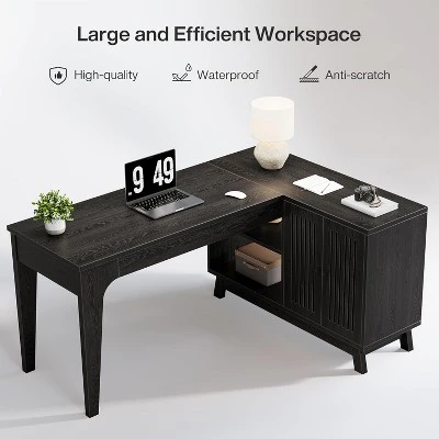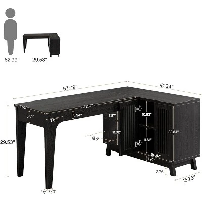 The 41-inch corner desk offers an expansive 41″ W x 19.6″ D work surface, offering you ample space to spread out your work, hold your computer and other desk accessories. This L-shaped desk features two open storage shelves and a lateral cabinet, providing ample storage space for your books, files, office supplies, or personal items, keeping your work area clutter-free.