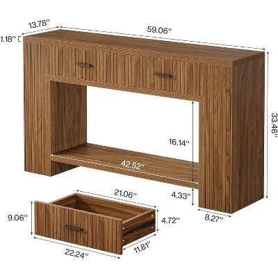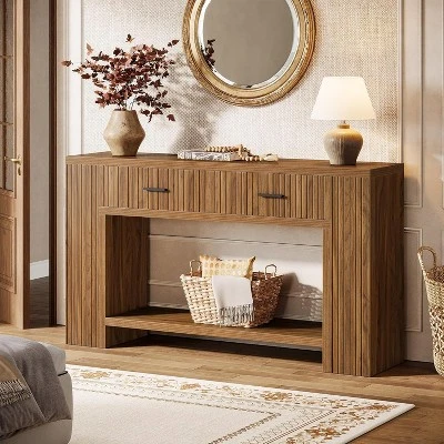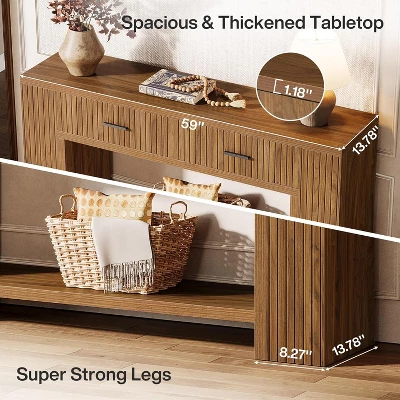 This console table with drawers features an eye-catching vertical groove texture that adds rhythm and depth to your décor—like a statement piece that softly sings in the background. Perfect as a behind couch console, hallway console, or entryway organizer, this rustic console table adds style, storage, and structure wherever life needs a graceful anchor.
