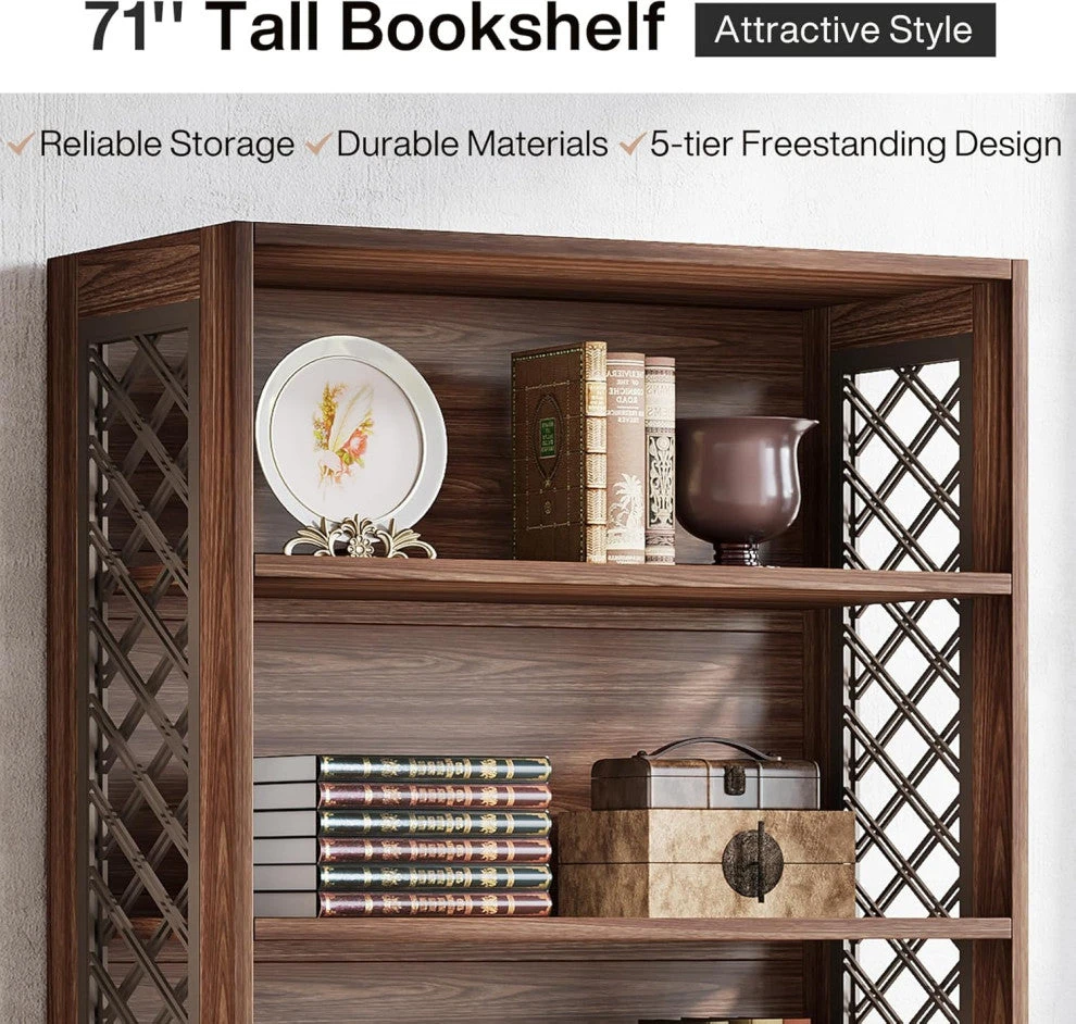 Tribesigns 6-Tier Bookcase, 70.8″ Vintage Tall Bookcase, 5-Shelf Display Rack
