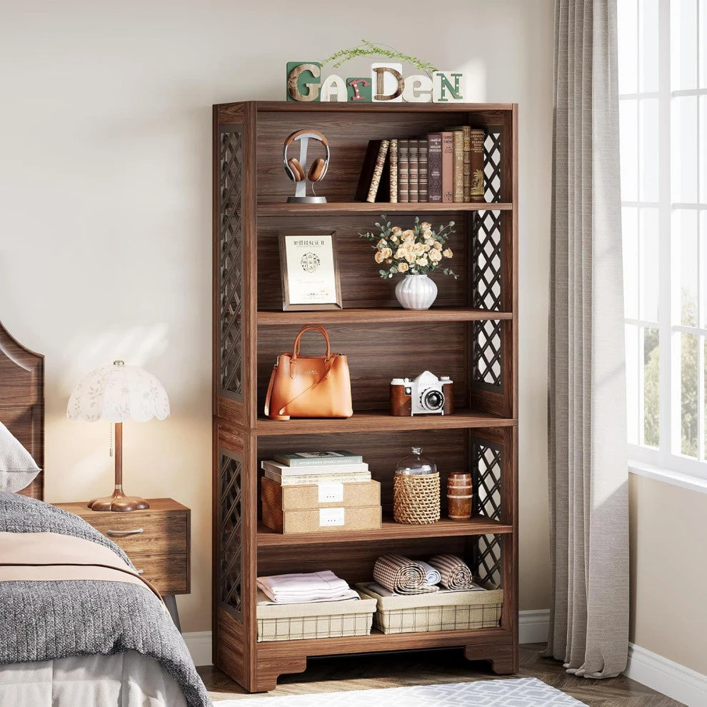 Aesthetically Pleasing: The unique X-shaped pattern adorning the sides of this bookshelf adds a touch of elegance to your decor. It easily breathes life into any room and is a must-have for your home or office.