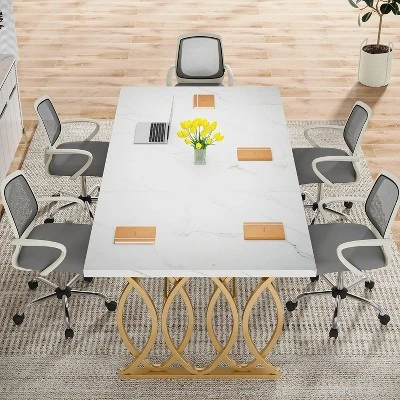 Measuring 62.99″ W x 31.5″ D, the desktop of this office desk provides ample space for laptops, projector, files, and other office supplies. It comfortably accommodates 4-6 co-workers, making it perfect for brainstorming sessions, leadership meetings, and small team collaborations. Besides, several table desks can be put together to form a larger workspace when in need.
