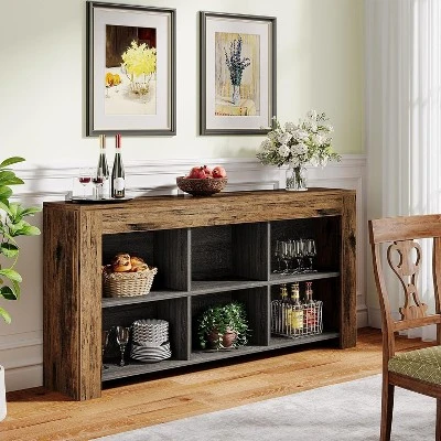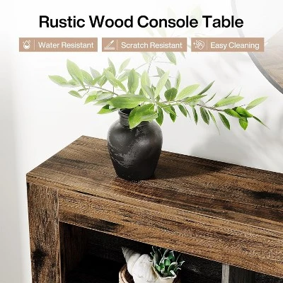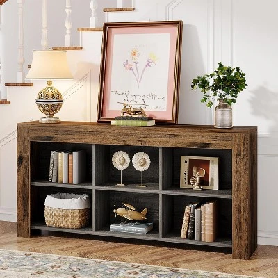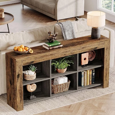 Add a touch of vintage charm to your space with the Tribesigns 63-inch console table. Crafted with a rustic brown finish and knife-cut wood texture, this sofa table effortlessly combines a retro and industrial style, perfect for various scene styles. Whether you place it at the entrance, next to the sofa in the living room, or even next to the stairs, this rustic wood console table will surely make a statement. Its versatile design allows it to blend seamlessly into any room, adding functionality and aesthetic appeal.