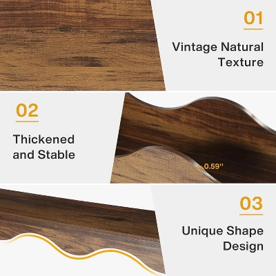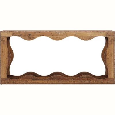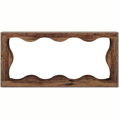 This Farmhouse Console Table is known for its classic farmhouse style, and its simple yet functional design makes it the perfect decorative piece for any home. The carefully crafted tabletop showcases natural wood grain and texture, while the heavy-duty legs showcase the sturdiness and durability of farmhouse furniture. The retro console table uses carefully designed wavy lines, showing the edges of the middle part gracefully undulating. This design not only adds visual dynamics to the tabletop, but also injects a sense of playfulness and vitality into the entire space.