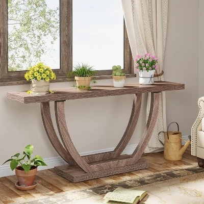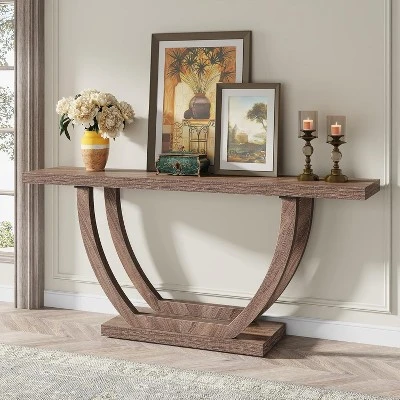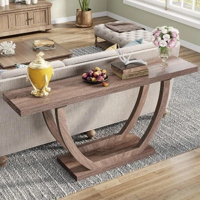 Featuring clean yet sturdy lines, vintage wood textures, and a geometric heavy-duty base, this console table boasts an elegant farmhouse look that aims to elevate the elegance of your home space. Its two-tier design allows you to display your favorite decor pieces while also providing convenient shelves to stash away essentials. Unlike other accent tables for the living room, this narrow and long behind-couch table is perfect for any space. Whether it’s in your entryway, hallway, living room behind the sofa, foyer, or office as a TV table, it will seamlessly fit in.