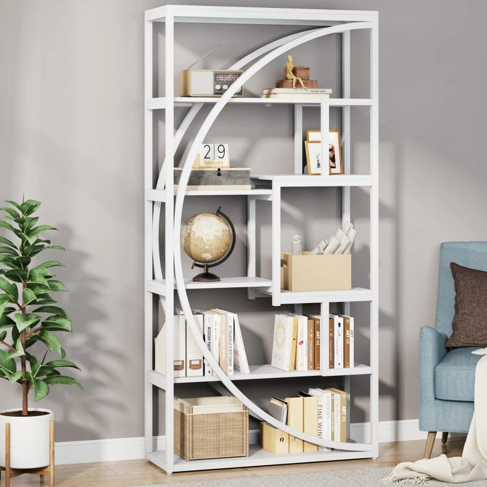 Get Organized in Style: With six tiers and 8 open shelves, this tall bookcase provides ample space for all your books, photos, and decorative items. The compact size allows you to maximize your storage without taking up too much floor space.