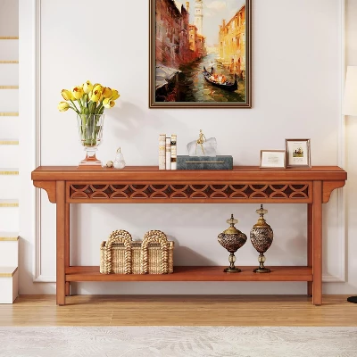 Add a touch of style to your home with this narrow console table. Whether you place it behind a couch to be a sofa table in the living room or use it as an entryway hallway table in the entrance, it will be a fantastic ornament that brings elegant and retro charm to the room. The skinny narrow design of this long console table makes it easy to tuck into your entryway or hallway for displaying framed photos, crafts, vases, home simple decors, and so on, a great addition to your home.
