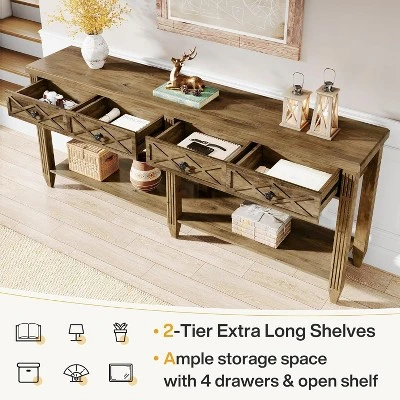 - Farmhouse style console table with vintage metal handles