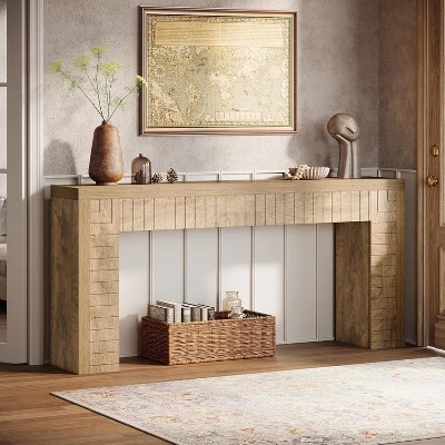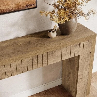 - Farmhouse Console Table: Featuring a clean, minimalist silhouette and a natural wood finish, this rectangular rustic console table effortlessly complements a wide range of decor styles—from modern and industrial to rustic and Scandinavian