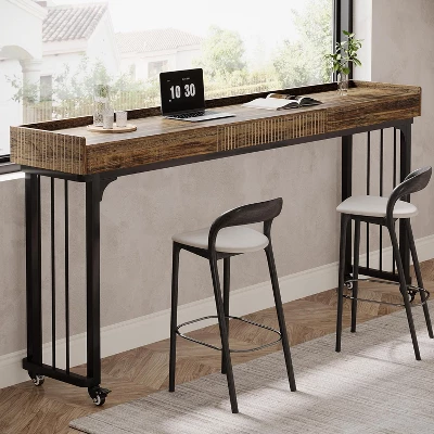 Experience ultimate convenience with this 78.8-inch overbed table, featuring smooth-rolling wheels and a spacious surface perfect for working, dining, or applying makeup. The built-in storage shelf keeps essentials organized and within reach, while the adjustable height and mobile design make it easy to move around your bedroom, living area, or home office. Finished in a warm brown tone, it combines practical function with rustic charm to enhance your daily routine.