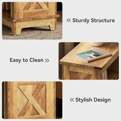 This Tribesigns end table is made of wood, featuring dual shelves and X-design accents, which combines functionality with aesthetic appeal. With an appropriate height, it can serve as a tall nightstand in the living room, bedroom, or office. The rustic brown appearance exudes a country vibe, easily blending into various home styles. It is very convenient for placing table lamps, alarm clocks, or storing small items, adding a unique charm to the space.