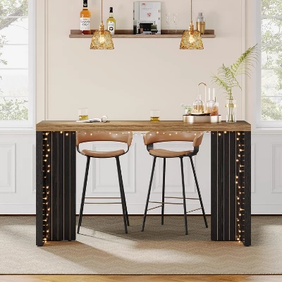 - Generous Dimensions: Measuring 19.69″ D x 55.12″ W, this home bar unit provides ample space for drinks, snacks, and socializing with guests. The table height stands at a comfortable 36.02-inch, perfect for standing or sitting with bar stools