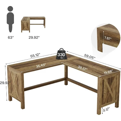 With a 59″ x 55″ desktop, this corner executive desk gives you space to multitask—place dual monitors, paperwork, and a printer without crowding. Generous 29.92″ H legroom keeps long sessions comfortable. Showcasing X-patterned side panels, dark walnut wood grain, and clean lines, this farmhouse work desk blends rustic charm with modern flair—transforming your home office into an inspiring workspace.